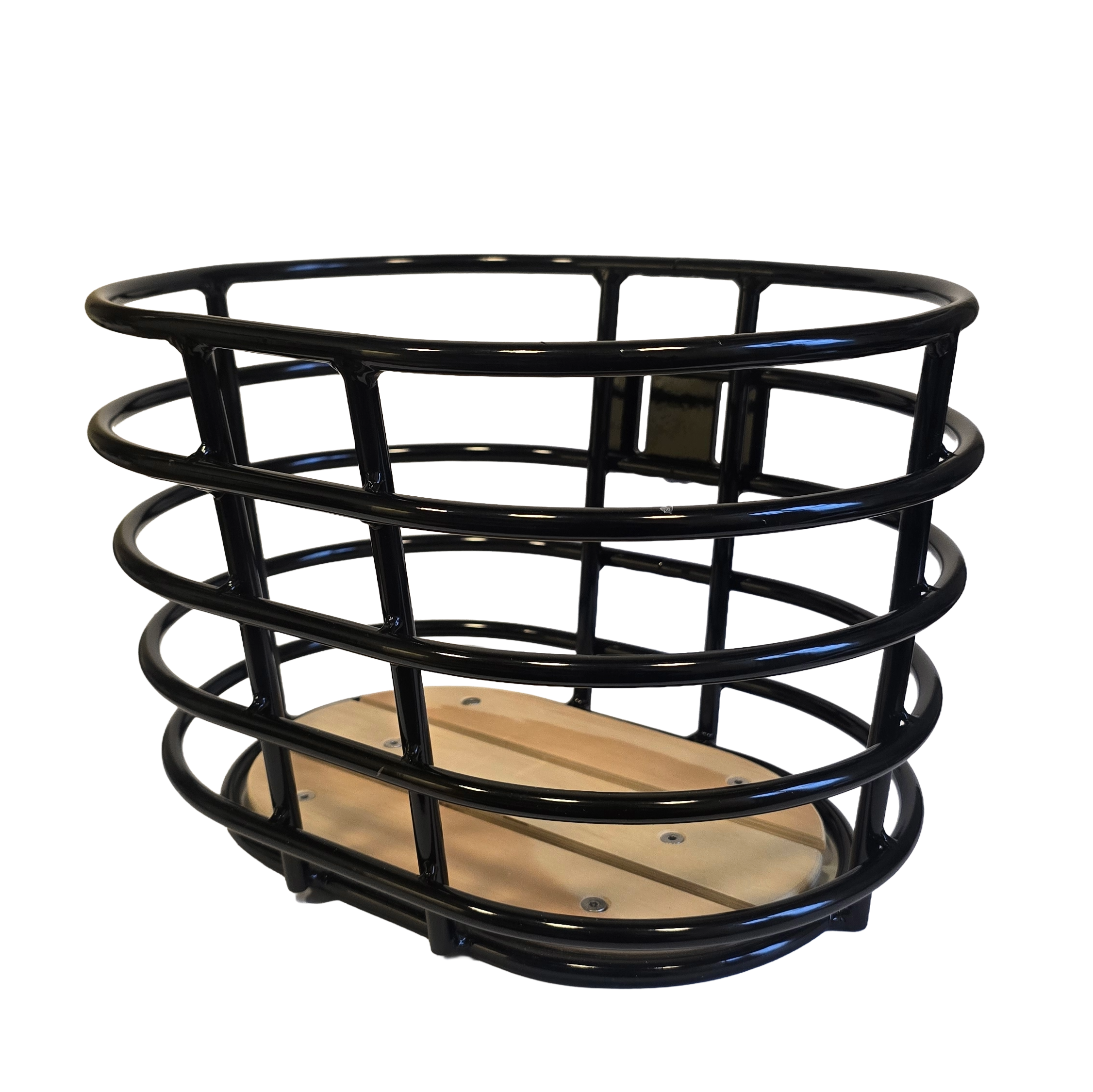 Ge din cykel ett riktigt lyft med denna stilrena cykelkorg i svartlackerad aluminium. Med sin unika kombination av grova rör och en botten i äkta trä, är detta korgen för dig som vill ha funktionalitet utan att tumma på designen.