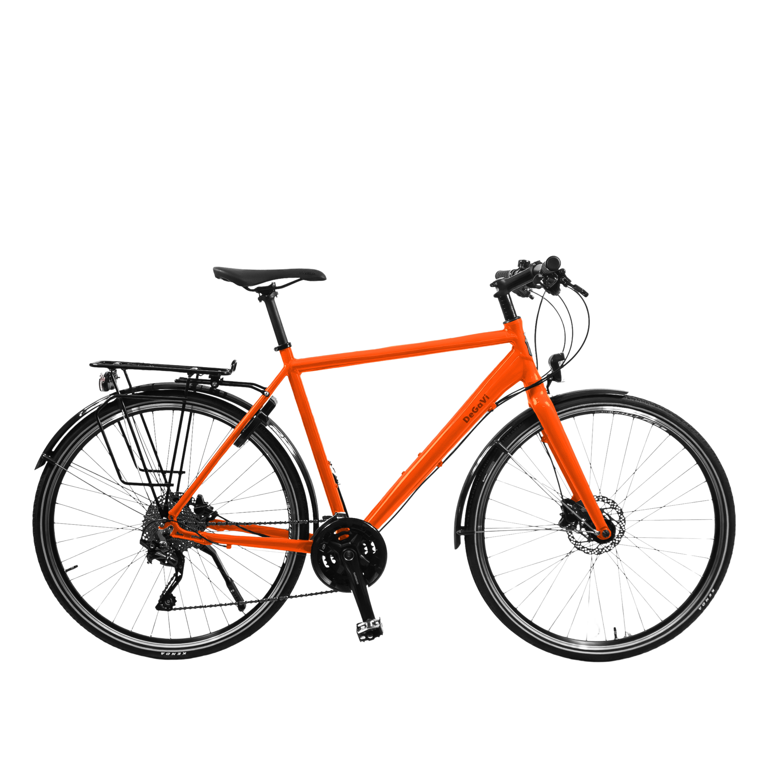 Trekking Deore 3×10 är en 10 växlad Touring/Trekking cykel som är anpassad för cykelsemester då vi har 3 växlar fram och 10 där bak från Shimano Deore , variationen blir mycket större. När man cyklar med packväskor och annan utrustning så cyklar man runt med mer vikt än vad man är van vid. Ju fler växlar desto mer varierad terräng kan man utforska. Fullt utrustad med Skärmar, belysning, godkänd lås, pakethållare och stöd. Miljövänlig pulver lackerad ram och framgaffel i aluminium som vi själva lackerar. Punkterings skyddade däck med reflex kanter.